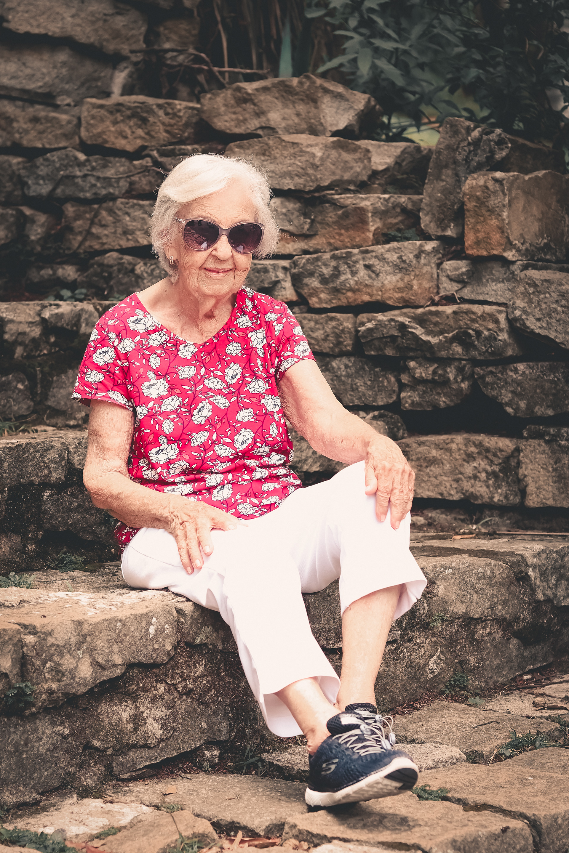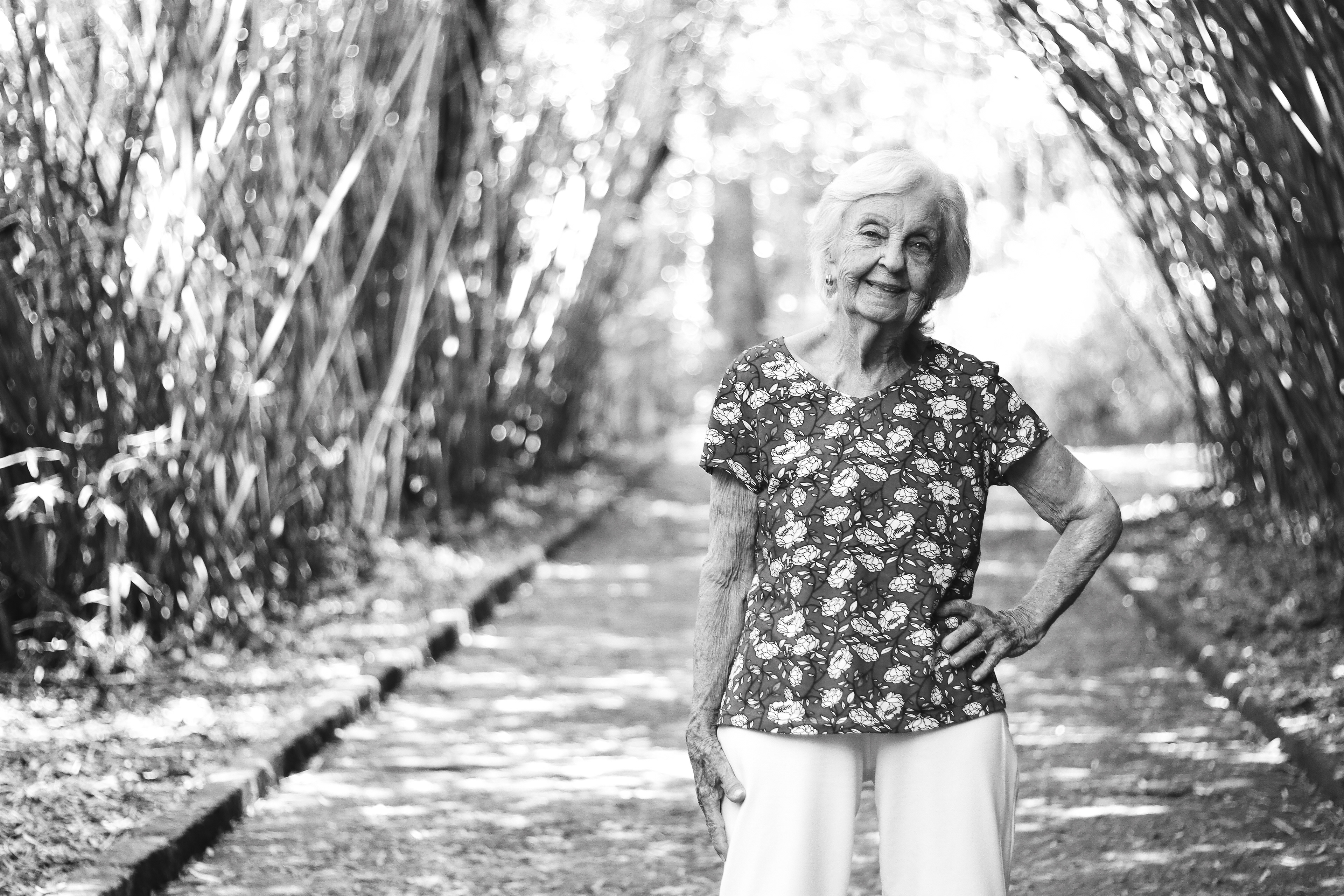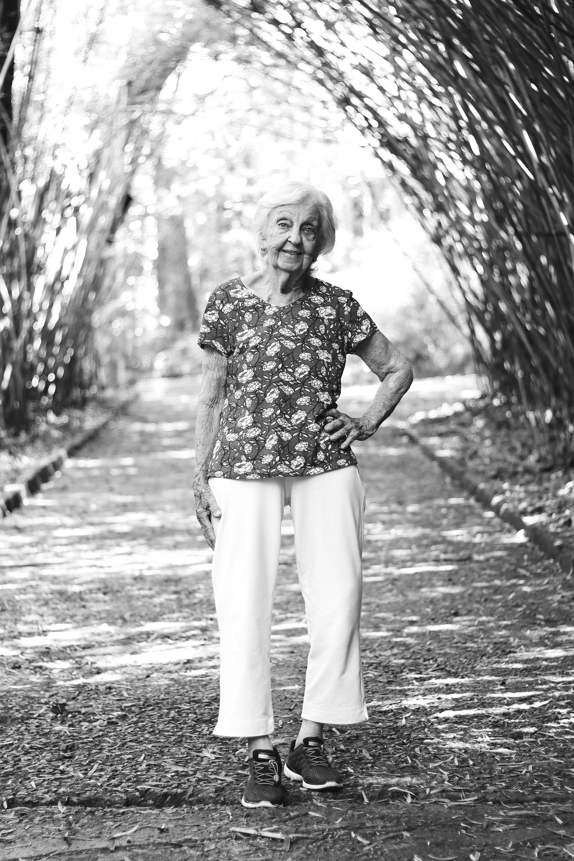 Em março de 2020, minhas lentes capturaram sua essência no Jardim Botânico de São Paulo. Apesar do dia nublado e do ambiente desafiador, Tetê mostrou sua força e determinação. Com mobilidade restrita, ela caminhou com seu andador por ruas de paralelepípedos e terra, entre pedras, revelando a profundidade de seu amor pelos momentos compartilhados com a família. Sua disposição em enfrentar essas adversidades demonstrava seu inabalável espírito de vida.